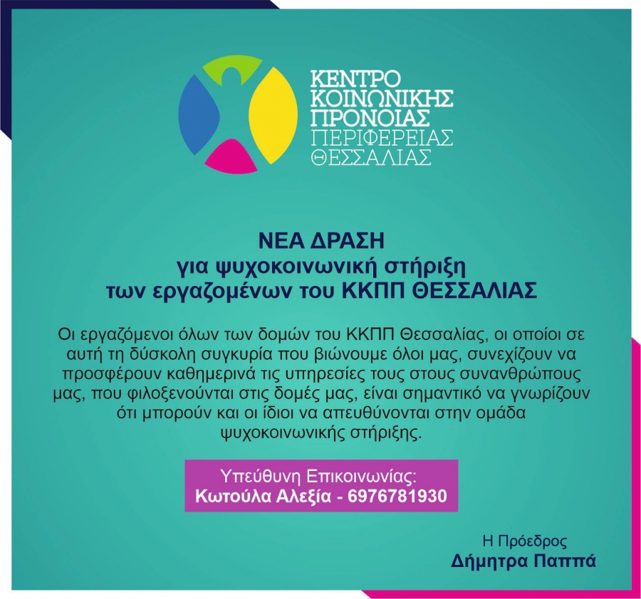 Ψυχοκοινωνική στήριξη των εργαζομένων του Κέντρου Κοινωνικής Πρόνοιας Περιφέρειας Θεσσαλίας