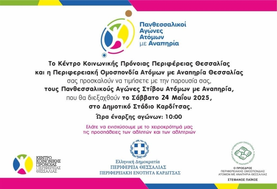 Η μεγάλη γιορτή του αθλητισμού επιστρέφει δυναμικά στην Καρδίτσα! Το Σάββατο 24 Μαΐου 2025, η Καρδίτσα θα φιλοξενήσει τους Πανθεσσαλικούς Αγώνες